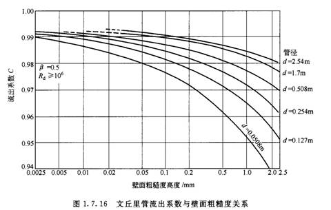 文丘里管內(nèi)壁沉積臟物起二重作用:減少通道截面積和增加表面粗糙度。兩種影響綜合起來(lái)使流出系數(shù)降低,如圖1.7.16所示。