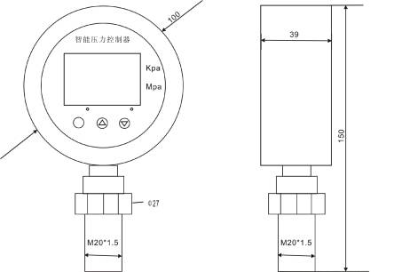 LKBPK104智能壓力控制器是集壓力測量,顯示 . 輸出,控制于一體的壓力測控產品。該產品為全電子結構,前端采用隔離膜充油壓阻式壓力傳感器,由高精度的 A/D 轉換,經微處理器運算處理,現場顯示,并輸出一路模擬量和兩路開關量。