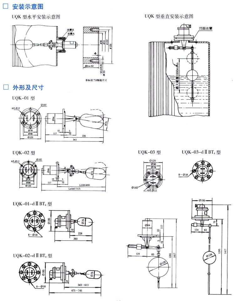 UQK-01、UQK-02、UQK-03型浮球液位控制器適用于對各種容器內(nèi)液體的液體控制,當液位到達上、下切換值時,控制器觸點發(fā)出通斷開關(guān)式信號。產(chǎn)品系列分防爆或非防爆兩大類,防爆型能用于易燃和易 爆介質(zhì)為1.2級及A、B、C組承壓容器的液位控制。控制器不適用于對黃銅、不銹鋼等材料有較強腐蝕作用以及含有導(dǎo)磁雜質(zhì)的介質(zhì)。